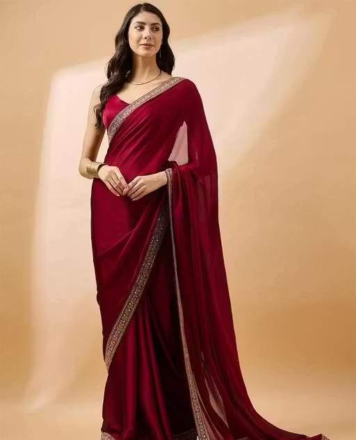 Name: Women’s Printed Maroon Pure Silk Saree With Heavy Embroidered Work Border