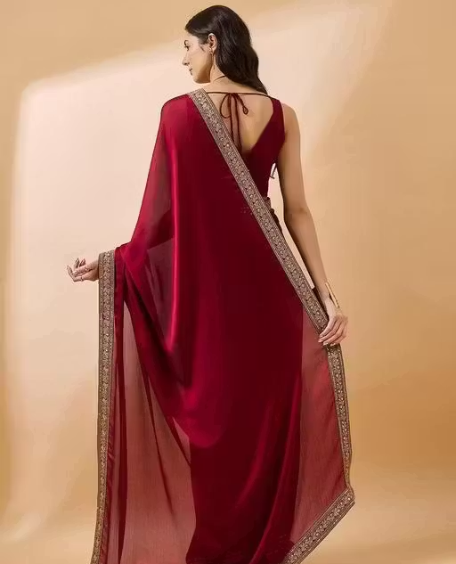 Women’s Printed Maroon Pure Silk Saree With Heavy Embroidered Work Border