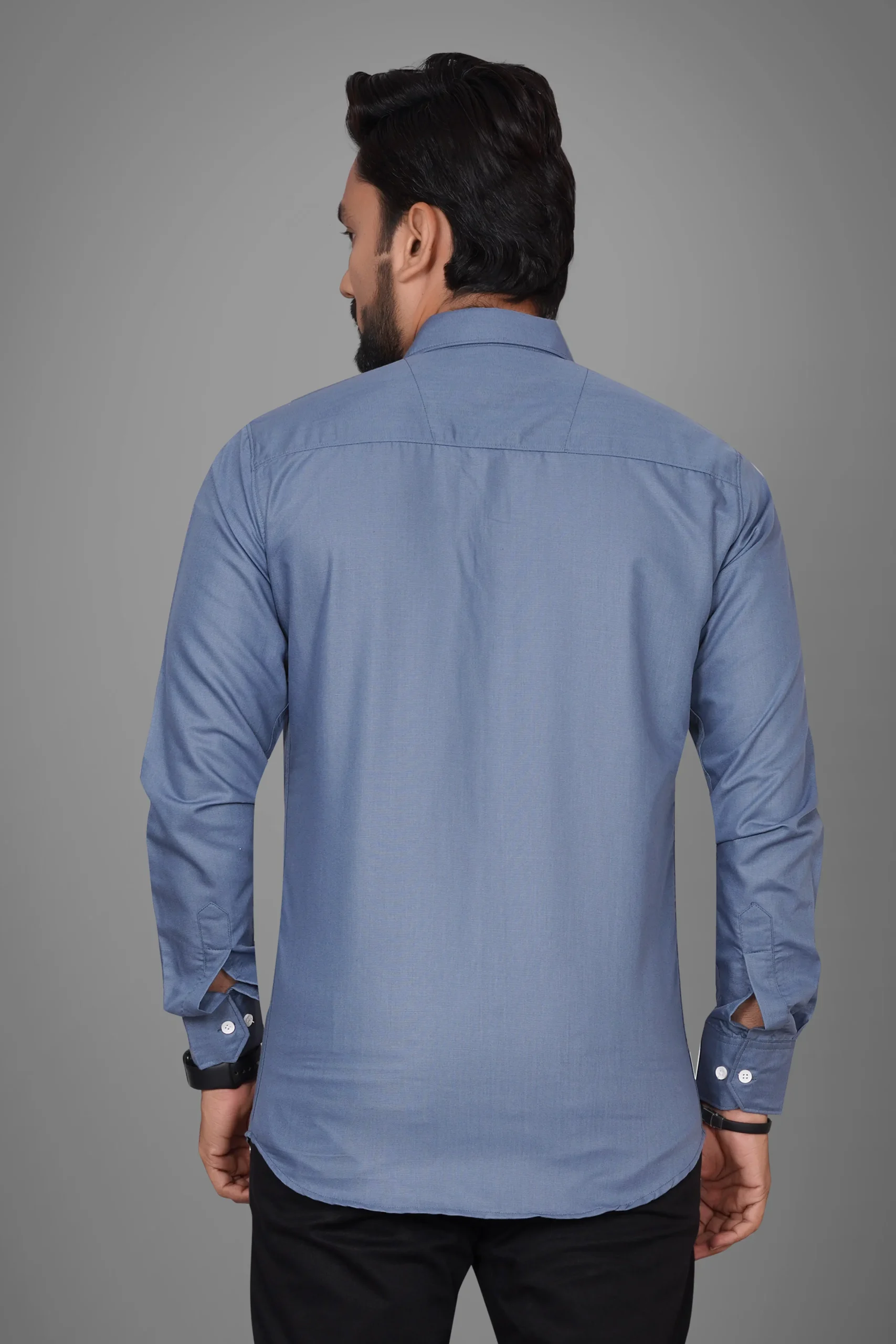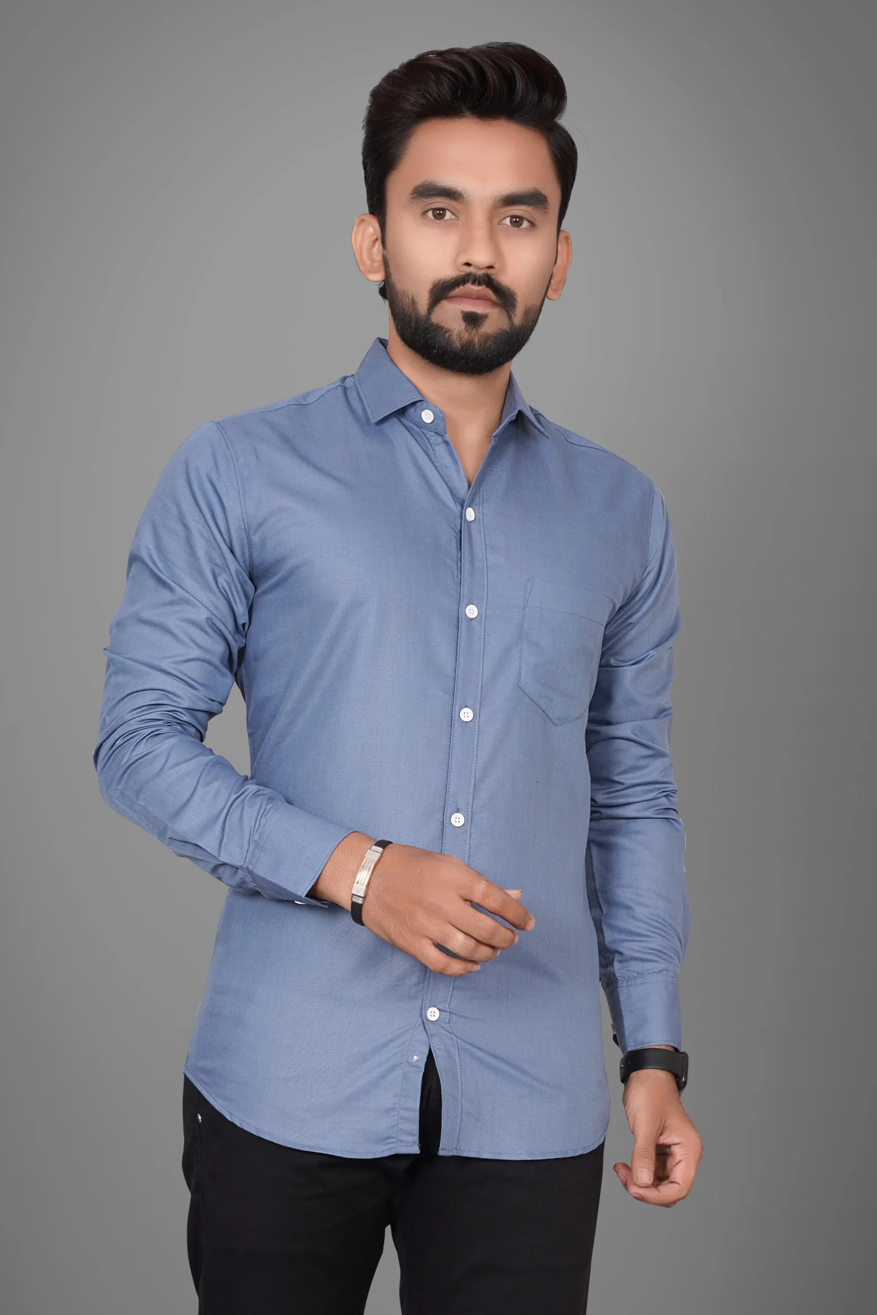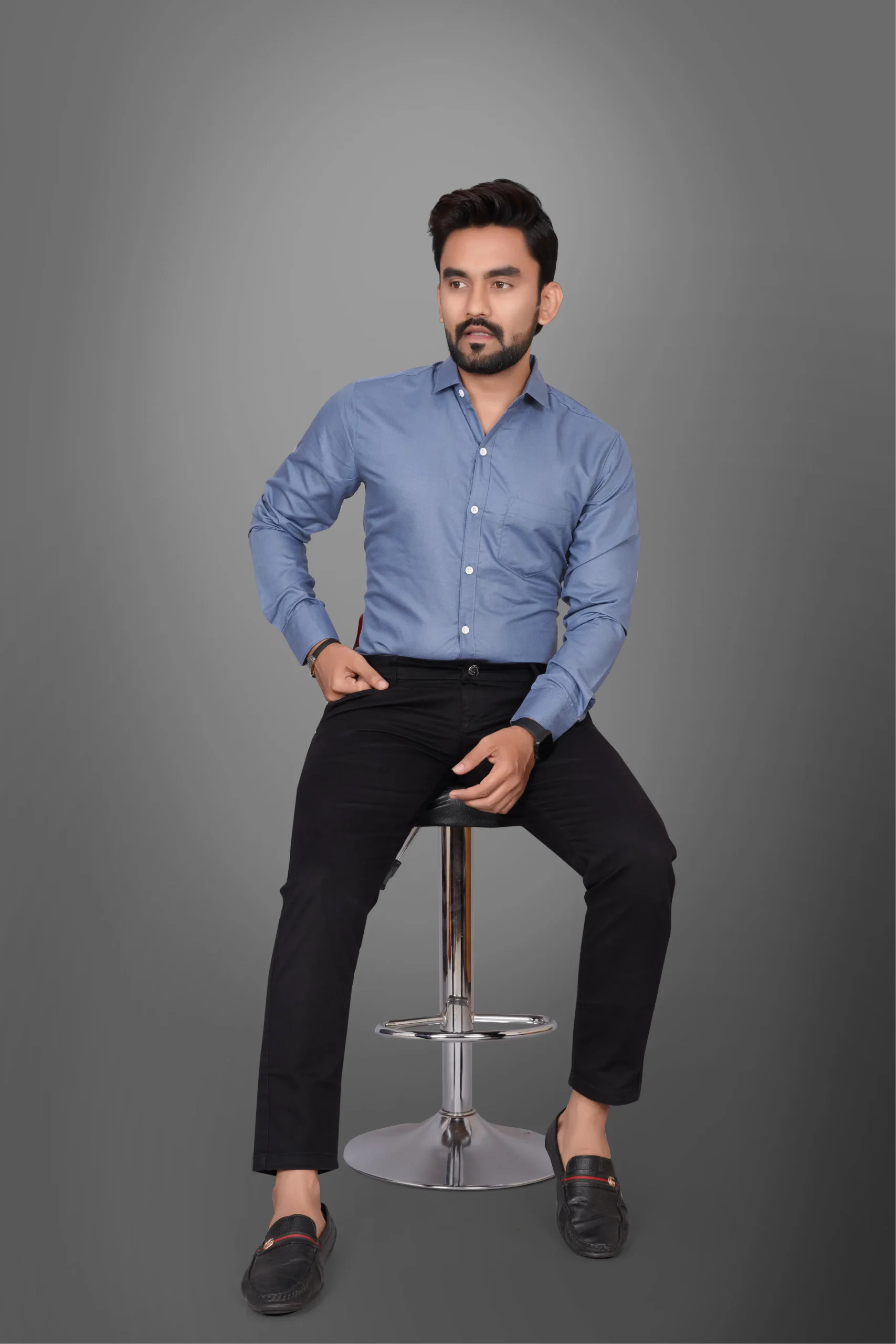 Ye menβs solid steel blue shirt premium quality fabric se bana hua hai jo subtle, classy aur modern look deta hai. Steel blue color ek elegant aur versatile shade hai jo office wear, meetings, casual outings aur daily wear ke liye perfect choice hai. Soft aur breathable material hone ki wajah se ye shirt poore din comfortable feel deta hai. Clean solid design aur smart fit aapke overall look ko polished aur professional banata hai.