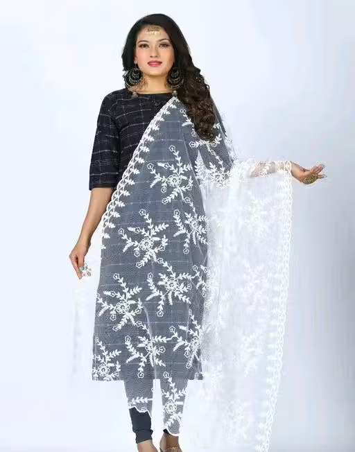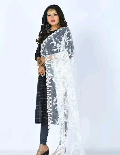 Add a touch of elegance to your outfit with this stylish embroidered dupatta, crafted from lightweight net fabric. The beautiful embroidery enhances its overall look, making it perfect for festive and special occasions.
