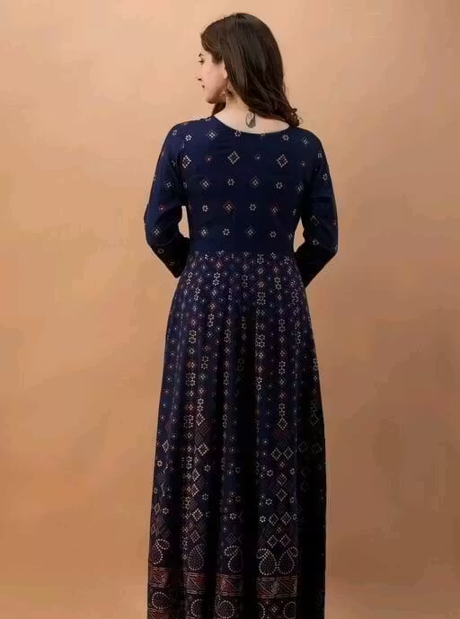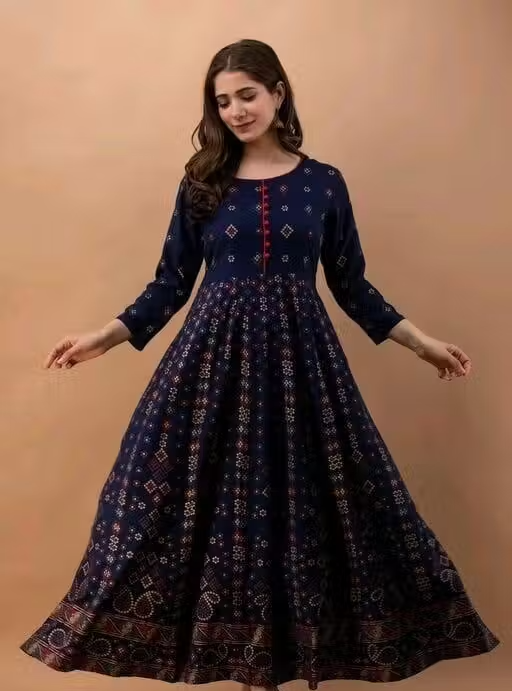 Make a statement with this elegant printed gown, crafted from premium quality rayon fabric. Designed for a rich and graceful look, this gown is perfect for parties and special occasions.