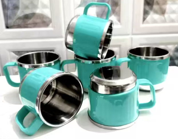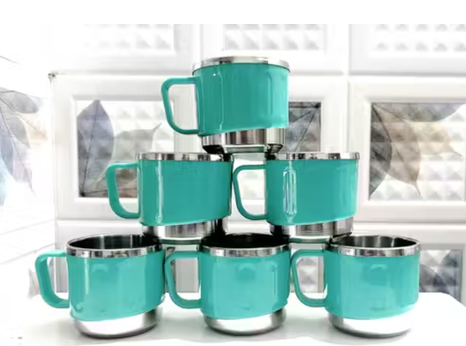 Name: Mystic Cart Pack of 6 Classic Stainless Steel Tea Cup Set | Steel Cups | Coffee Cups | Payali Set, Mini Cups Set of 6 | Chai ka Cup -Inner Steel Outer Plastic (Aqua Green)