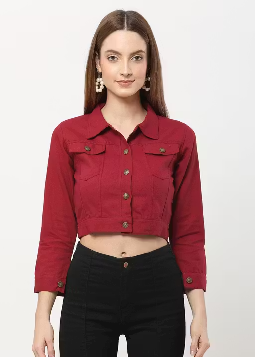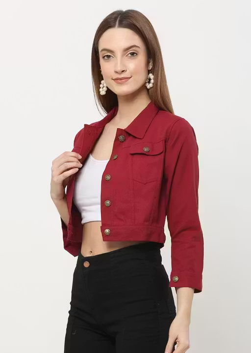 Upgrade your wardrobe with this trendy twill fabric jacket designed for girls. Made from soft and durable cotton blend fabric, it ensures comfort along with long-lasting wear.