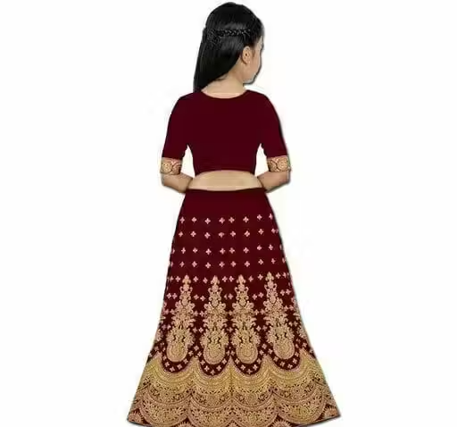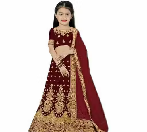 Make your little girl look elegant and festive-ready with this beautiful lehenga choli set. Crafted from premium satin fabric with a soft net dupatta, this outfit offers a rich and stylish traditional look. The embroidered design on the choli and lehenga adds a graceful and festive touch, perfect for special occasions.