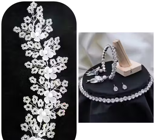 This elegant white tiara jewellery combo set is designed to add a royal and stylish touch to your look. Crafted from durable alloy with a silver-plated finish, it offers a bright shine and attractive appearance.