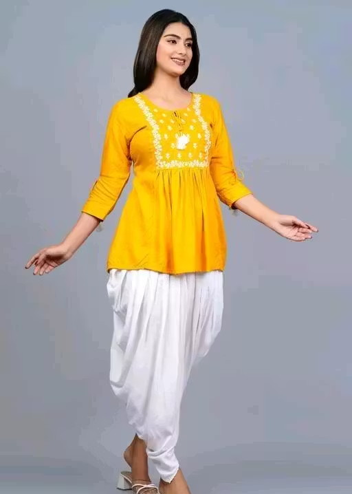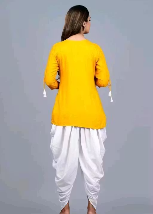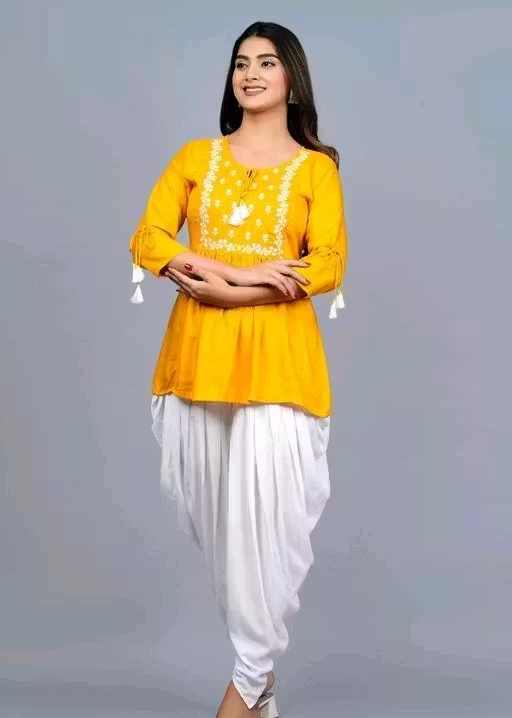 Upgrade your fashion game with this stylish women dhoti and top set, designed to offer a perfect blend of modern style and ethnic charm. Made from high-quality polyester fabric, this outfit is lightweight, durable, and comfortable for all-day wear. The embroidered detailing adds a touch of elegance, making it suitable for festive occasions, parties, and special events. The long sleeve top paired with a trendy dhoti-style bottom creates a unique and fashionable look for today’s women.