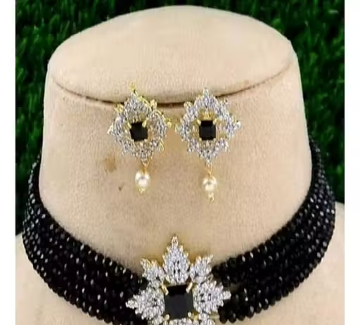 The necklace is decorated with artificial beads that enhance its beauty and create a trendy design. The adjustable chain ensures a comfortable and secure fit for different neck sizes.