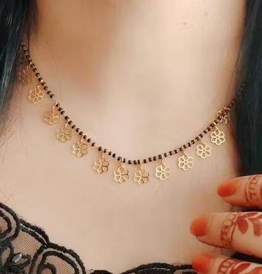 The necklace is decorated with artificial stones that enhance its sparkle and make it suitable for both traditional and modern outfits. The adjustable chain allows comfortable fitting for different neck sizes.