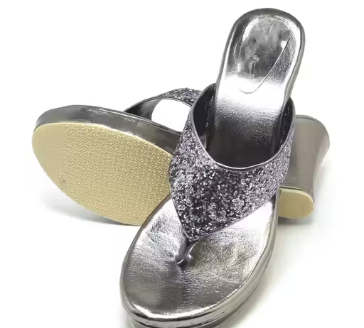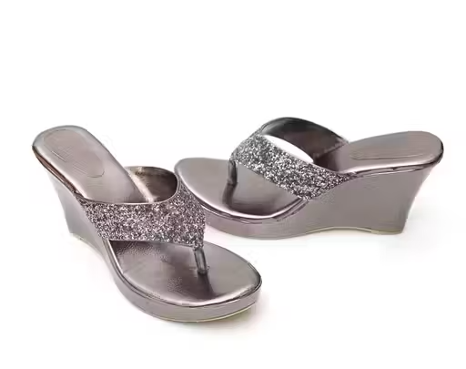 Add a touch of elegance to your look with these stylish grey embellished wedge heels. Crafted from premium synthetic material, these sandals offer comfort along with a classy appearance.